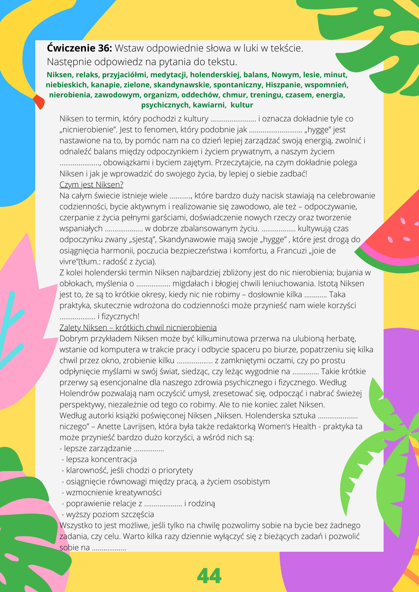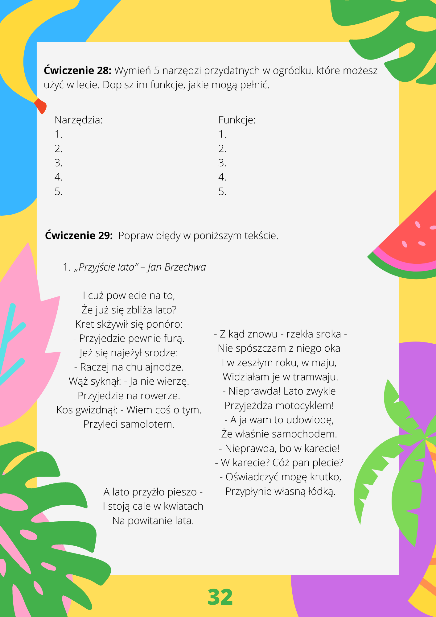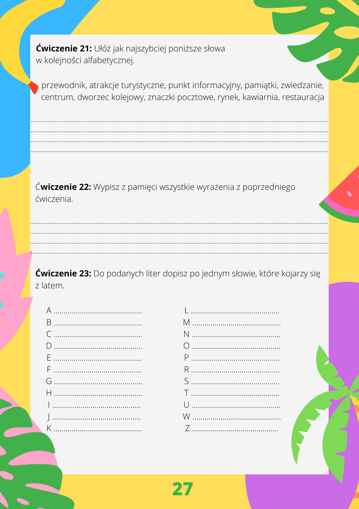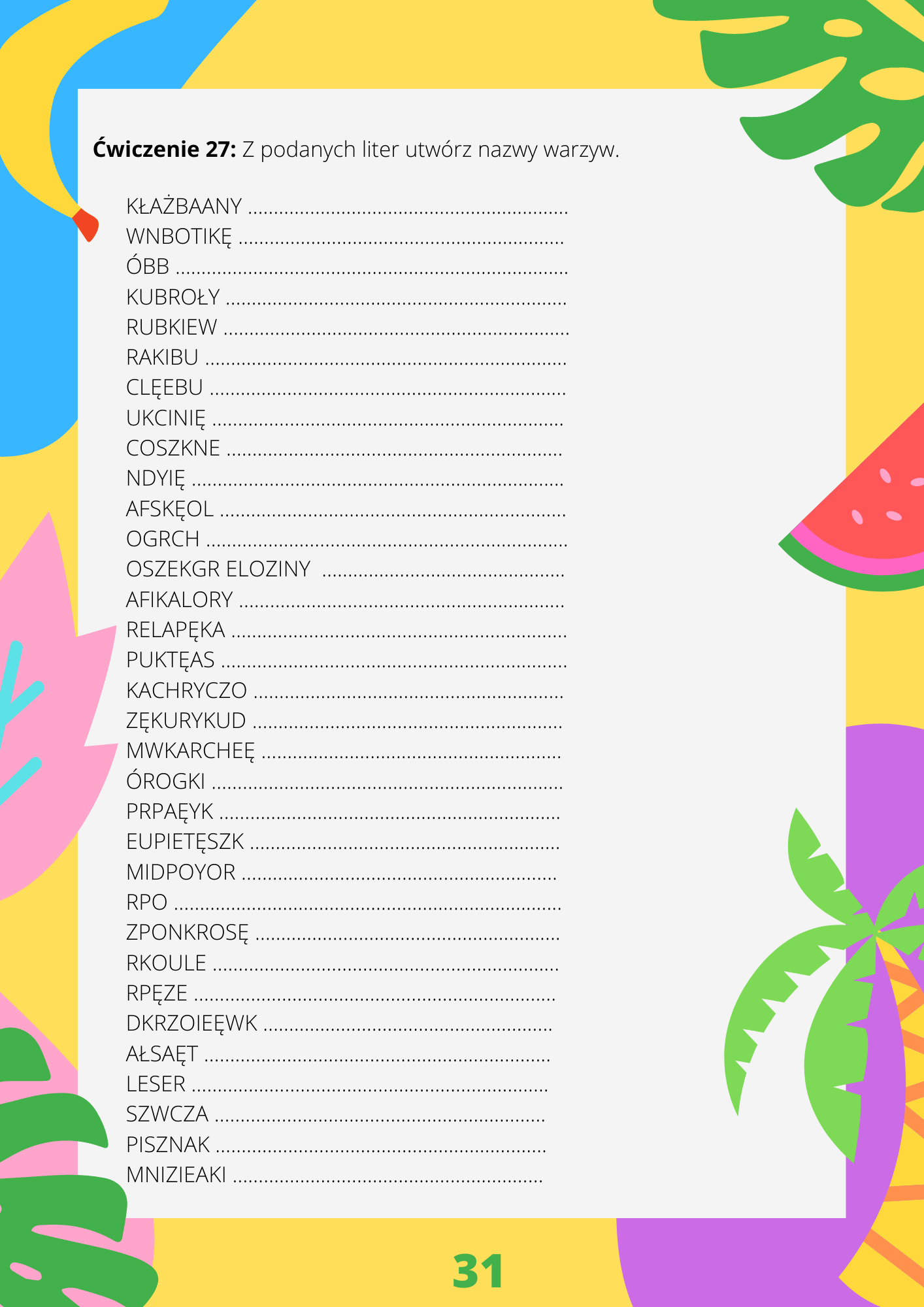 „Letni Trening Funkcji Poznawczych” to zeszyt ćwiczeń przepełniony wakacyjnymi skojarzeniami. To czas kojarzący się z lekkością, działaniem, otwartością – i w takiej konwencji projektowane były ćwiczenia.