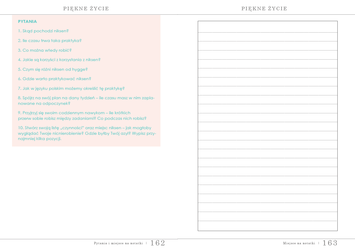 Ebook zaprasza do refleksji m.in.: nad naszymi relacjami, nawykami, sposobami radzenia sobie ze stresem czy spędzania wolnego czasu. To przyjrzenie się swoim emocjom, myślom, odczuciom w ciele, schematom myślenia i działania. Czas spędzony z lekturą może być przyjemnością i relaksem, ale też pracą nad sobą i inwestycją w piękne życie.
