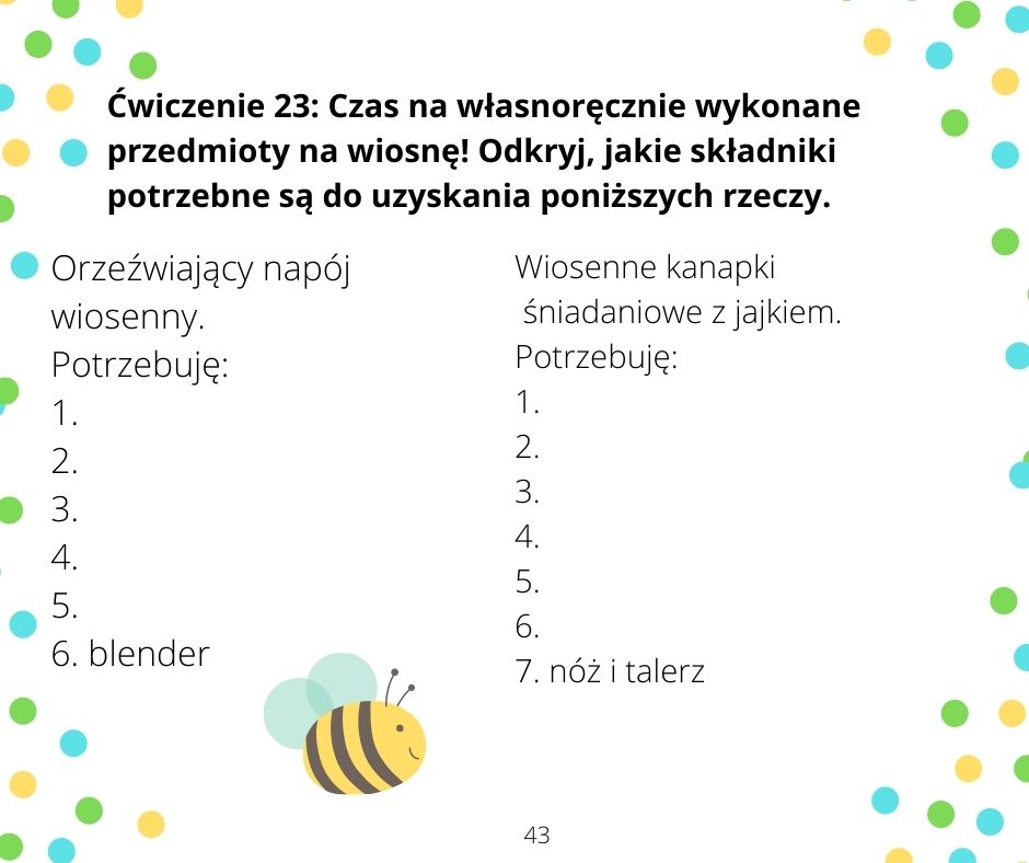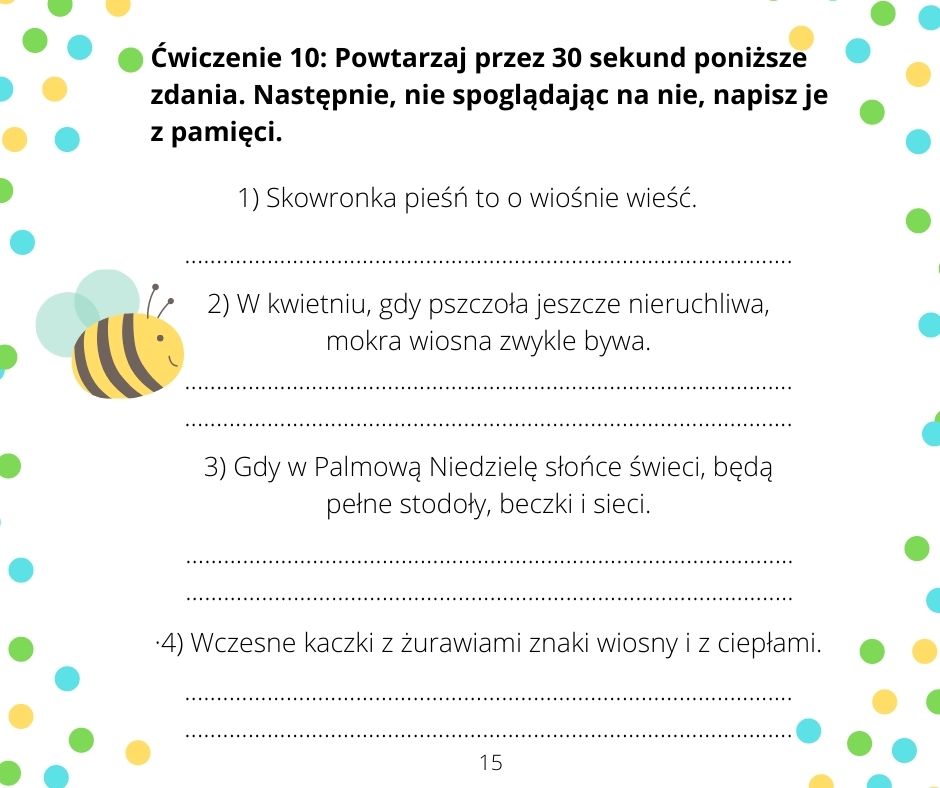 „Wiosenny Trening Funkcji Poznawczych” to zeszyt ćwiczeń przeznaczony na kwiecień i maj, z uwzględnieniem świąt wielkanocnych.
